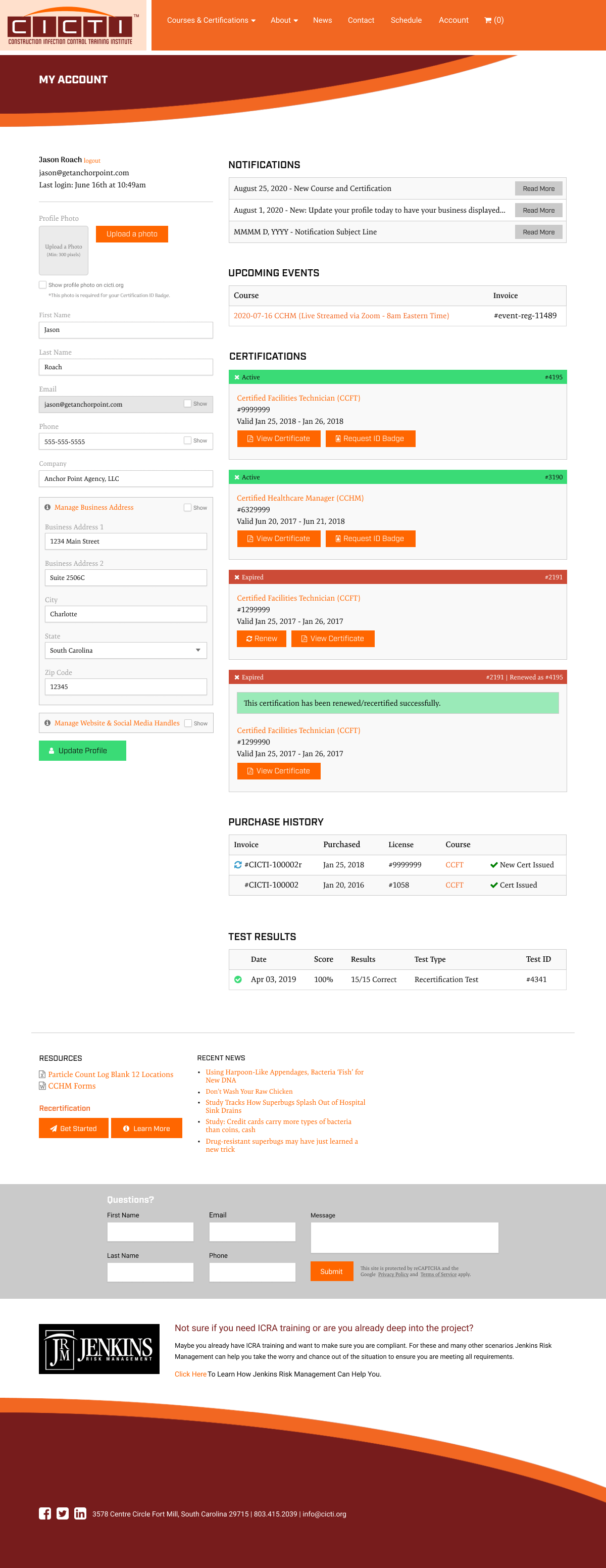 This flourishing training institute that serves the healthcare construction industry approached me to take over development and hosting for his existing web-application. CICTI.org serves the United States and beyond with certified healthcare infection control and risk assessment training that is targeted to those in the construction industry. This website provides services to capture leads, onboard members, provide various dashboards to members, trainers, and other admins to manage training courses, exams, certifications, renewals, badge requests, and admin portal to manage the entire platform.